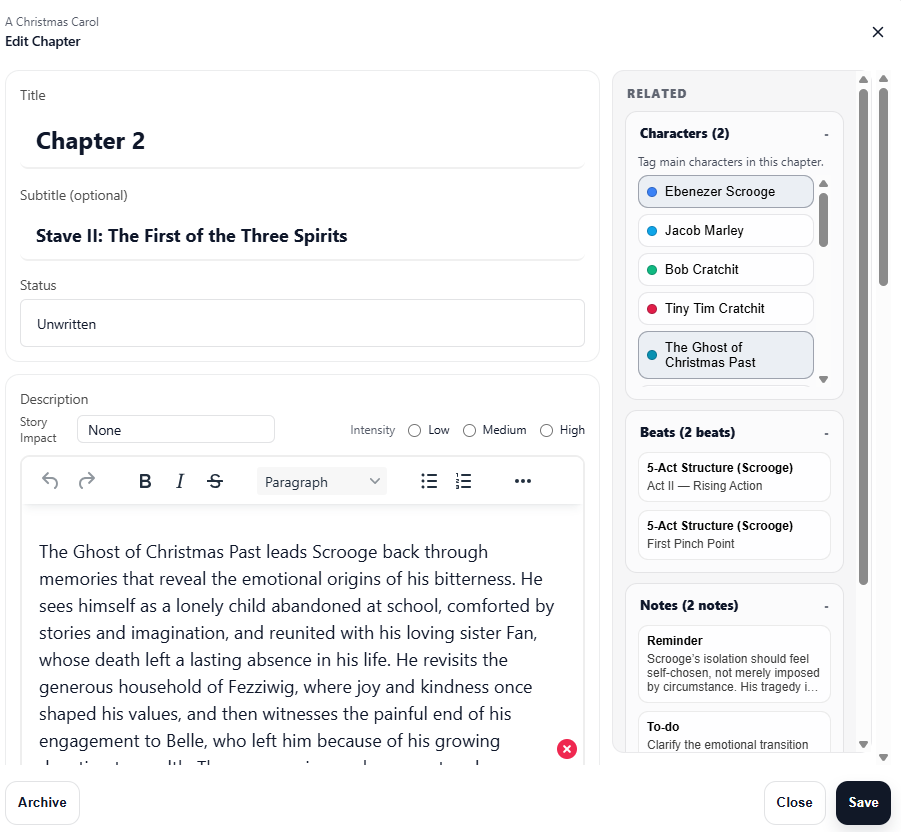 Scryla organises stories into chapters and scenes so you can plan structure clearly.